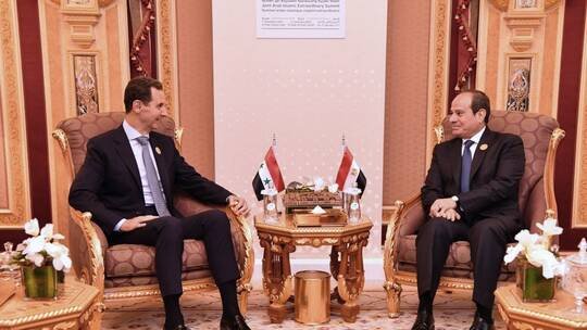 وأكد الرئيسان على العمل المشترك لدعم صمود أهل غزة، ووقوف سوريا ومصر ضد سياسة تهجير الشعب الفلسطيني من غزة التي يعمل عليها الجانب الإسرائيلي.