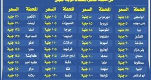 أكمل القراءة »وزارة النقل تنشر أسعار التذاكر من القاهرة لمحافظات الوجه القبلي